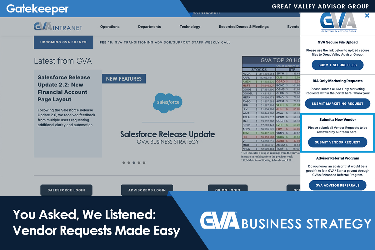A new Vendor Request feature is now live on the GVA Intranet (gvaria.com), making it easier than ever to submit new vendor requests for reviewRead More