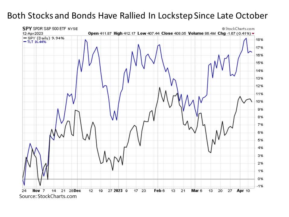 The return of diversification. It has been difficult to discern so far, but broader economic and market conditions are supporting a more favorable environment for bonds to provide diversification for stocks. Since late October 2022, both stocks and long-term U.S. Treasuries have rallied strongly as shown in the chart below.